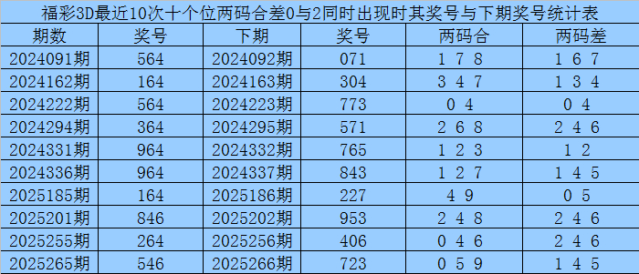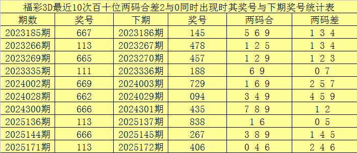 从以上统计不错看出,十个位两码合差0与2同期出现之后其下期两码合差推崇最热的4个鉴识为:0124,本期十个位两码合差不错参考这四码中的数据。