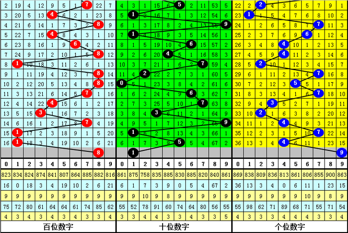百位:上期开出号码1,遗漏0期,现在该位遗漏最大的号码为9,遗漏21期,本期莫得解冻的迹象。