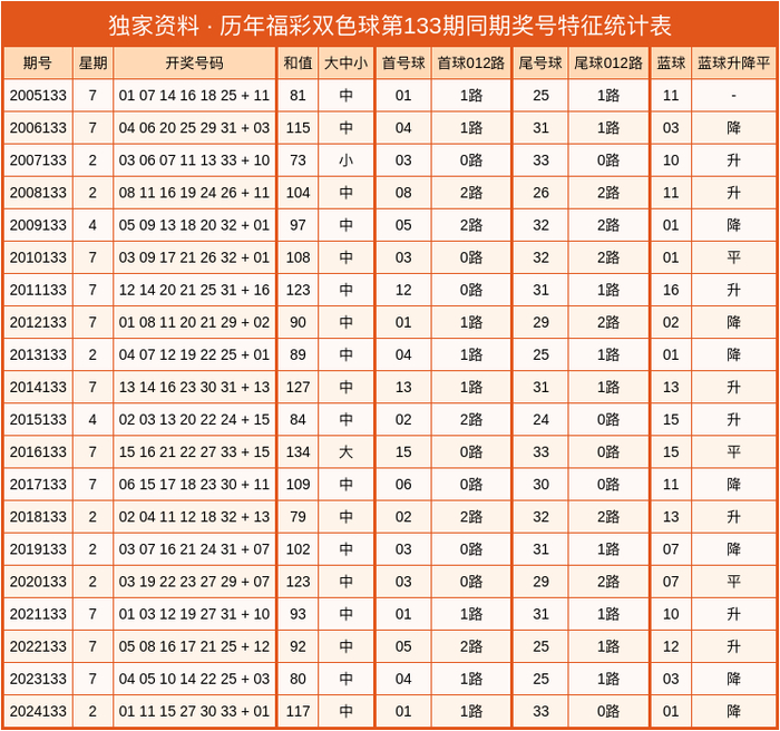 蓝球分析:客岁同时蓝球开出01号球,属于小奇的情势,在同时数据围聚,蓝球升降中区分开出:9次升、3次平、8次降。概括分析来看,本期看好蓝球较客岁同时呈现【升】姿态,一码定蓝球:15。